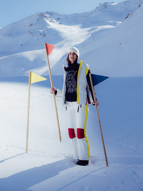 Weiß und Creme funktionieren überall – auf der Piste wie abseits. Helle Outfits setzen stilvolle Akzente und verschmelzen stilvoll mit der Bergkulisse.