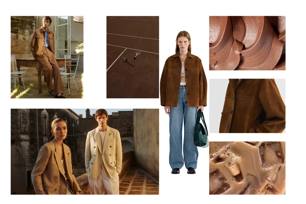 Tatsächlich ist „Mocha Mousse" bereits in den Frühjahr/Sommer-Kollektionen 2025 internationaler Designer allgegenwärtig. Der warme Braunton verleiht fließendem Seidensatin, weichem Leder und Wildleder eine elegante, luftige Note und zeigt sich in luxuriösen Texturen. Als wahres Kombi-Wunder bietet "Mocha Mousse" eine Vielzahl an Look-Variationen für das Jahr 2025. Der Farbton harmoniert perfekt mit anderen Erdnuancen wie Beige, Taupe oder Sand und schafft edle Ton-in-Ton-Looks – die ideale Alternative zu klassischen All-Black-Outfits. Wer mehr Kontrast sucht, kombiniert ihn mit kühlendem Blau oder zarten Rosétönen und setzt so auffällige, modische Akzente.
